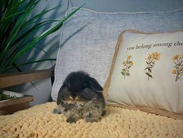 Lolly is an adorable broken black otter purebred Holland Lop. She is also fully pedigreed. She has a very cute little face and loves to be pet. She is from Happy Hills Rabbitry and is very well structured. She is 3 years old and weighs around 4.5 pounds. I can't wait to see the baby bunnies she has for us in the future.