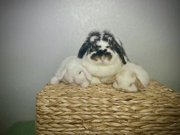 Lil' Bun is what started it all. She was the first Holland Lop we ever had. We got her in 2017 and have had her ever since. Lil' Bun was purchased from DTL Rabbitry. She has had many adorable litters for us. She is the oldest doe we have, but she doesn't let that slow her down. She loves eating oats, playing in the yard, and has the softest silkiest fur. I am so glad to have her as a part of our rabbitry.