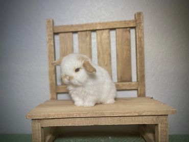Lily is, by far, the sweetest bunny in our rabbitry. Lily was purchased from DTL Rabbitry. She is 4 years old and I've had her since she was a baby. She loves to cuddle, get pet, and be held. She loves dried mangoes and will beg for them all day long. She is a sable point colored Holland Lop and is fully pedigreed. She has had five beautiful litters for our rabbitry and I am so glad I have the privilege to own such a loving bunny. Lily has been retired due to medical reasons but will remain with us.