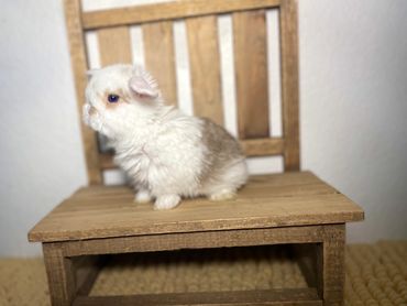 Emma is a 4-year-old cream Holland Lop. She enjoys being held, eating treats, and her time in the playpens. She is a very peaceful bunny and we love having her around. She is fully pedigreed and one of our smaller does. I love her coloring, structure, and cute little face and I can't wait to see what beautiful little fur balls she gives us in the future.